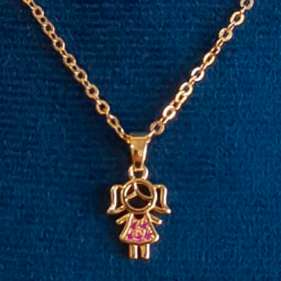 É uma joia cheia de significado, perfeita para eternizar laços especiais. Com um pingente em formato de menina delicadamente cravejado com cristais, a peça traz brilho sutil e um toque emocional que encanta.